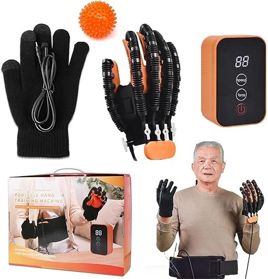 - 【Self-training Rehabilitation Robot Glove】- Rehabilitation Gloves is the ideal, item for reducing flexion contractures and helping to maintain strength and comfort in your hand after a stroke; Made of a variety of flexible polymer materials, comfortable fit and will keep you hand in place, long working hours can restore the dual functions of fingers and hands.